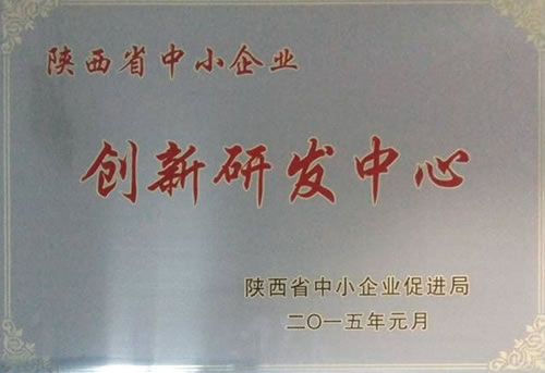 | 我公司喜獲“陜西省中小企業(yè)創(chuàng)新研發(fā)中心”榮譽稱號 |